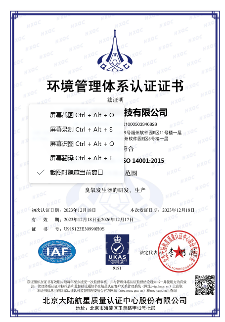 對于來料匯威嚴把質量關,精選每個部件的供貨商,同時,匯威建立了72小時老化體系,每一臺臭氧發生器的出廠都要經過嚴格的測試,保證品質。